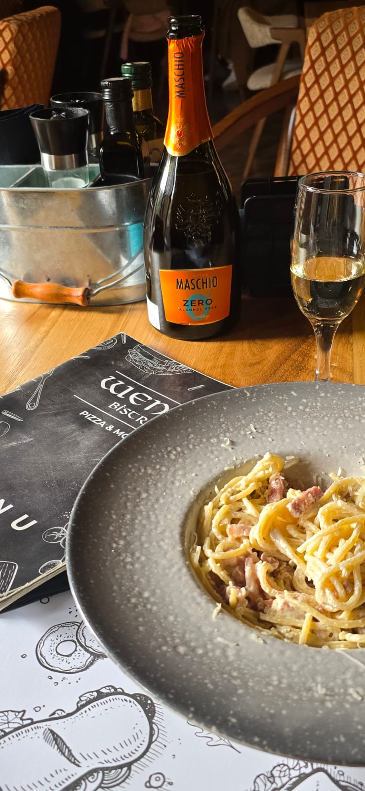 Carbonara e confort, e istorie și e un reminder că marile rețete nu se nasc din abundență, ci din inteligență și instinct. La Wenge Bistro, noi păstrăm spiritul autentic italian: paste făcute pe loc, ingrediente de calitate, gust echilibrat.